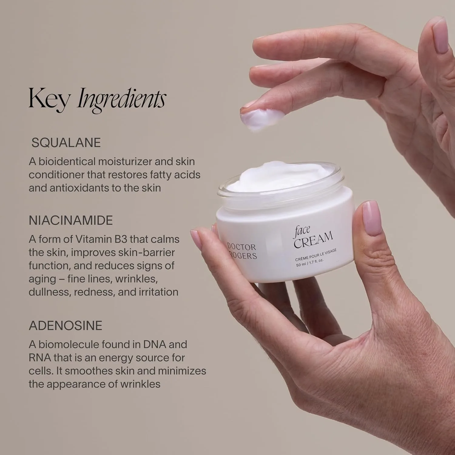 Not at all. Despite its ‘rich, silky texture,’ Doctor Rogers Face Cream is designed to ‘never feel oily or heavy.’ It absorbs beautifully, leaving your skin feeling instantly plumped, soft, and smooth, without any sticky or greasy residue. It’s ideal for use under makeup or as part of your nightly routine, providing deep hydration that feels weightless.