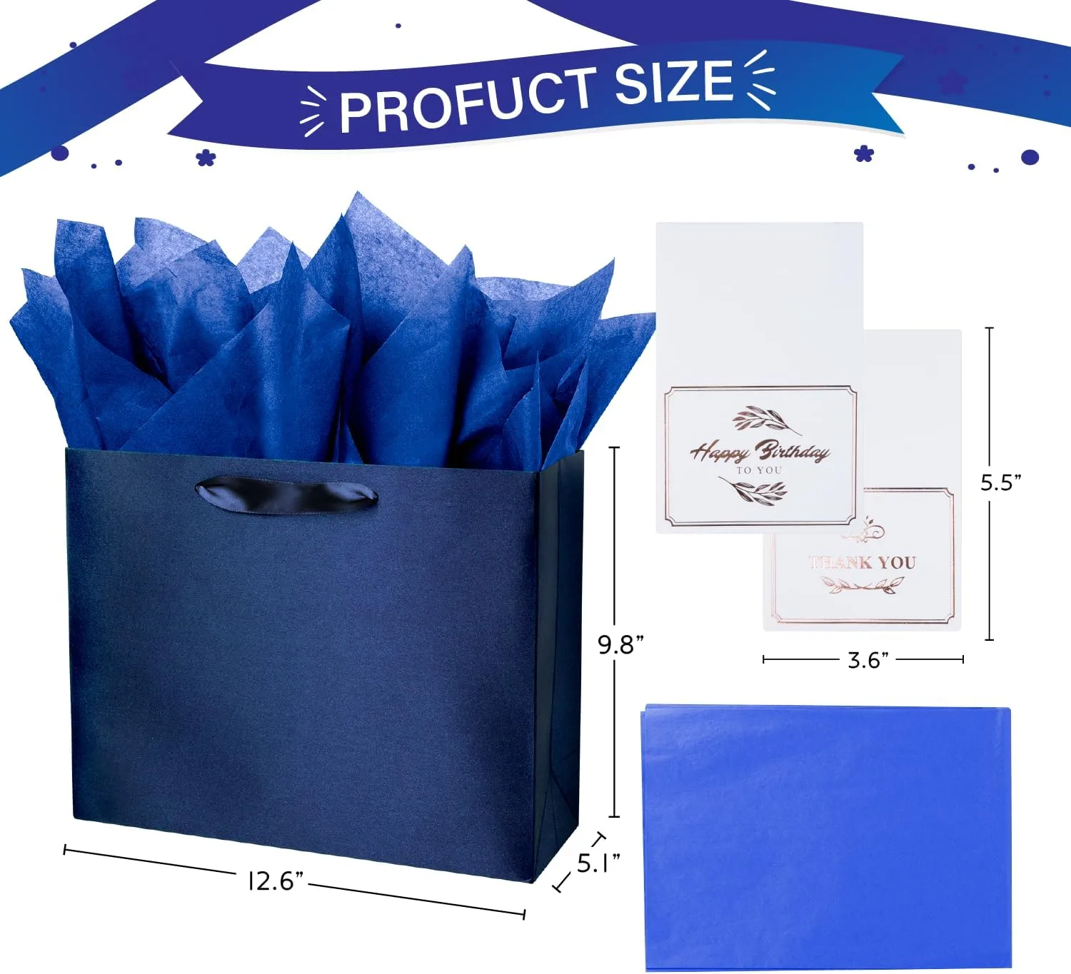A: The Linelglobal Blue Gift Bag is a complete solution! Each purchase includes “1 gift bag with 4 sheets of tissue paper” in a complementary color, and “2 small greeting cards for message left.” This thoughtful inclusion ensures you have all the essential elements for a beautiful and personalized presentation, right out of the box.