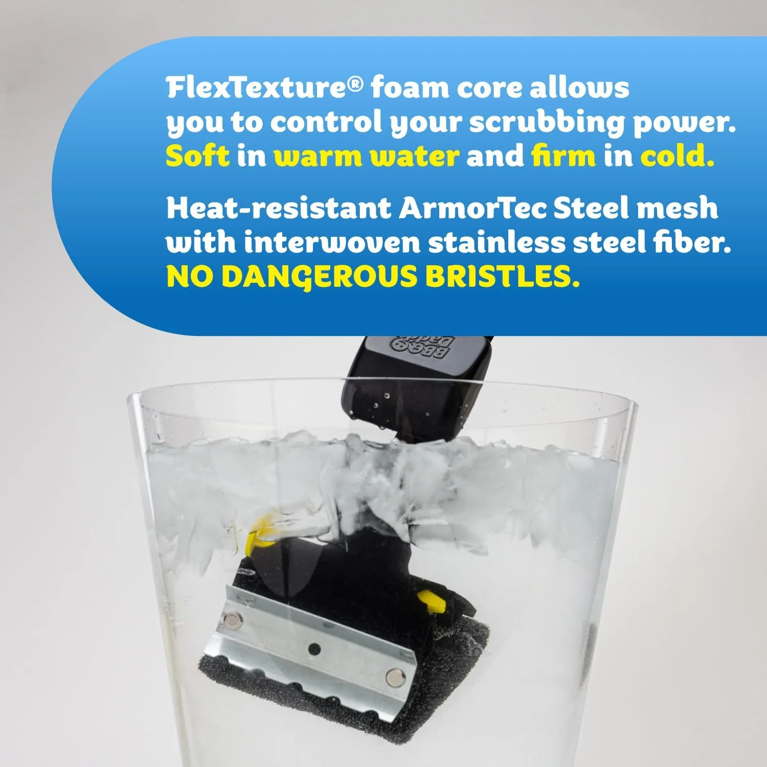A: Yes, absolutely! The BBQ Daddy grill brush features an an innovative, high-tech scrubbing head made of FlexTexture foam, which is completely bristle-free. This design eliminates the risk of harmful metal bristles breaking off and contaminating your food, a common concern with traditional wire brushes. You can grill with complete peace of mind, knowing your family’s meals are safe and delicious.